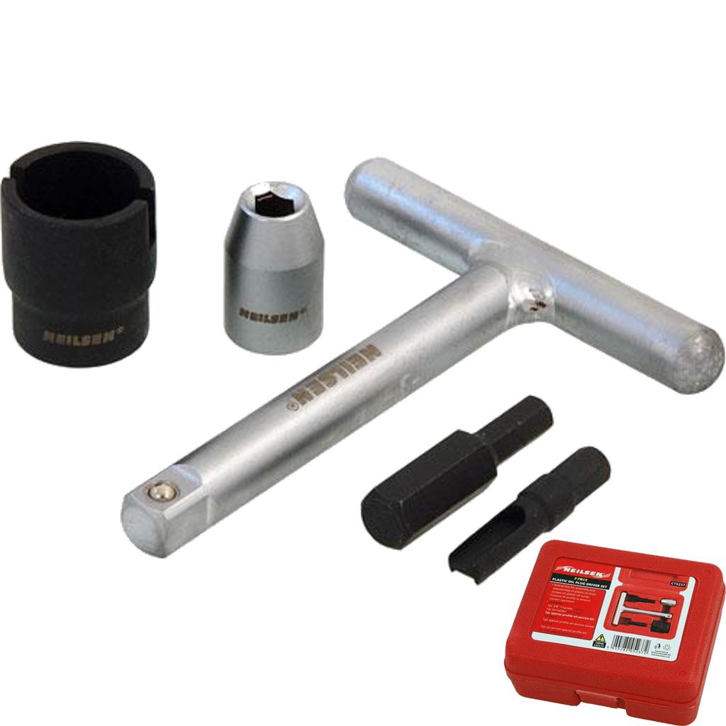 Neilsen 5pc Oil Service Profile Set 1/4+3/8 Drive For Plastic Oil Drain Plug