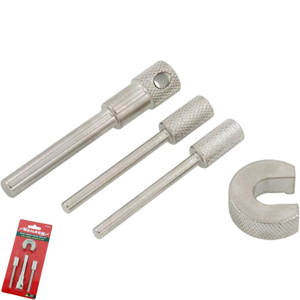 Application: Citroen: Relay/Jumper (01-02), Relay/Jumper II (02-06) Fiat: Croma (86-97), Ducato (86-06), Talento (87-94) Iveco: Daily (91-06), Turbo Daily (91-00) Peugeot: Boxer (00-02), Boxer II (02-06) Renault: Mascot (99-07), Master (89-98), Master II (98-01), Trafic (80-00) Vauxhall/Opel: Arena (97-01), Movano-A (98-03) Contents: 2 x Injection pump locking pin 1 x Flywheel locking pin 1 x Tensioner retaining tool OEM Nr.: Fiat: OEM1 1860638000 | 1870667000 | 187076501 | 1860617000 Renault: OEM2 MOT 861 | MOT 1054 | MOT 863 Opel: OEM3 KM6031 Ford: OEM4 21-260 | 303-732 Peugeot: OEM5 0132AB | 5711TD | 4527TS2 | 0178D | 0194A | 119790 Citroen: OEM6 0132AB | 5711TD | 4527TS2 | 0178D | 0194A | 119790 Mazda: OEM7 49JE02018 | 0991246510 Volvo: OEM8 9997169